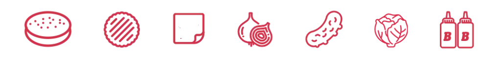 Potato Bun, frisch gesmashte Patties, Cheddar Käse, frische Zwiebeln, Gewürzgurken, Ketchup, Senf.